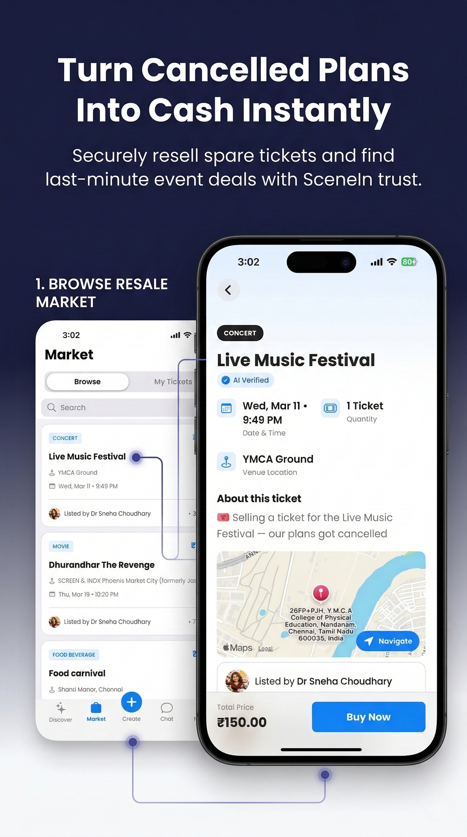 Plans changed? Sell or buy spare tickets in a verified ecosystem. No more shady DMs.